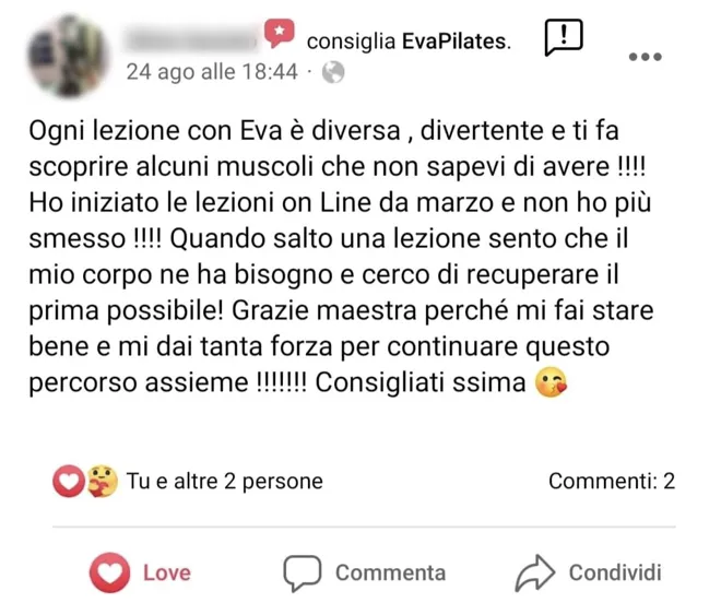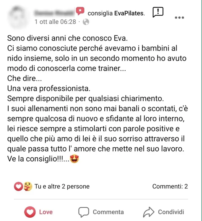 "Ciao, sono Eva, istruttrice certificata di Pilates con oltre 10 anni di esperienza. Ho studiato con i migliori maestri del Pilates e ho sviluppato un metodo unico che integra tecniche classiche e cliniche, specificamente studiato per affrontare problemi posturali, sintomi della meno-pausa, sfide legate alla gravidanza e riabilitazione del pavimento pelvico.